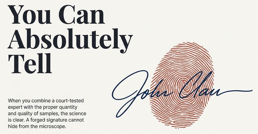 And then here’s the key: a real court-qualified expert in forensic hand analysis will know what differences are significant and what are not significant. And the ones that are significant, if they completely outweigh the insignificant ones, it’s a forgery. However, if there’s similarity in internal congruency, then it’s probably the same writer. And so, it’s very complex. I have yet to see a software program that can do it accurately. I’m not sure that I will in my lifetime, but there are some that get close. But the understanding of 20 to 30 years of experience looking at handwriting is pretty key. So, if you get a court-qualified expert, if they’re properly trained, if they’ve been to court, and you give them the proper amount of quality and quantity, you can absolutely tell if a signature is forged.