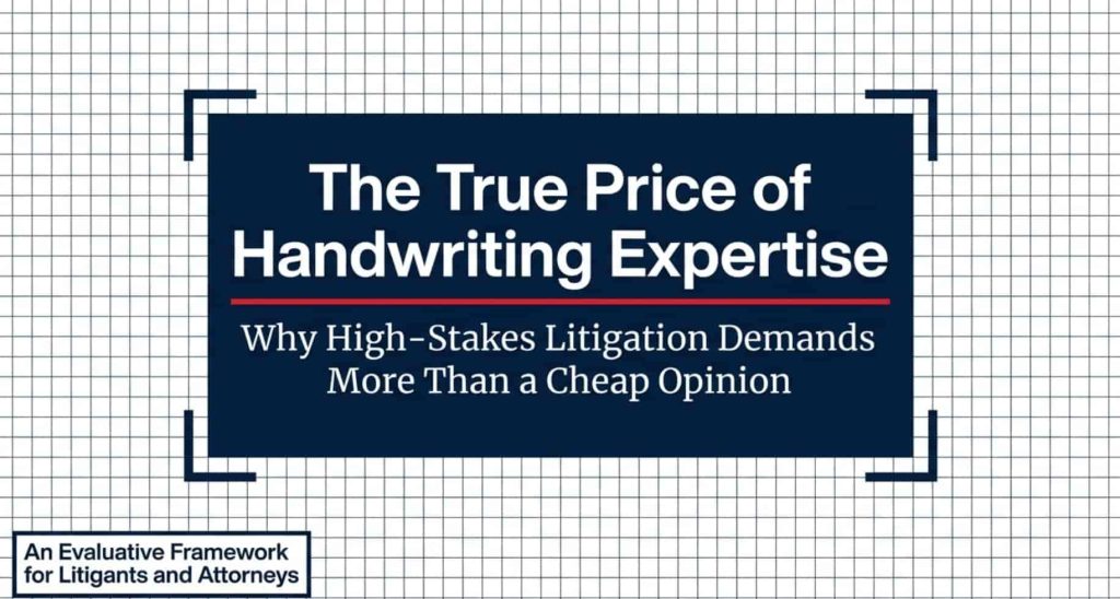 One of the challenges we have is that unless you’re an attorney and you’ve dealt with expert witnesses and you’ve dealt with expert testimony, you might assume, “Oh, it’s just a handwriting expert. I can tell it’s a forgery. That’ll be 600 bucks.”